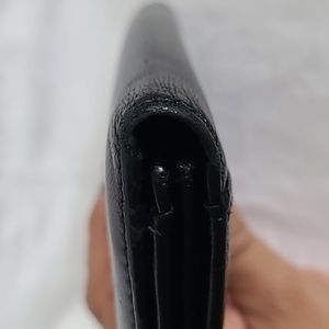 Used in good condition Salvatore Ferragamo black snap wallet. The exterior is very clean with minimal signs of wear. The interior has slight rubbing on one part of the wallet, pictures attached. The hardware is still intact and works perfectly. The wallet has enough room for 6 credit cards along with a cash pocket.