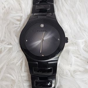 FOSSIL ARKITEKT FS-4166 All Black Real Diamond Stainless Steel Dress Watch/Used