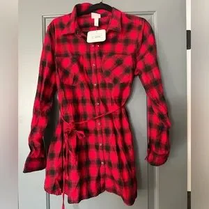 Perfect fall red and black plaid with waist tie medium maternity shirt. Brand is isabel maternity by target. Brand new with tags, never worn. Long sleeve.