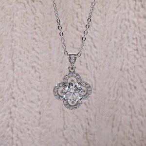 Certified 1ct. t.w. Moissanite Diamond Clover Halo Pendant Necklace NEW