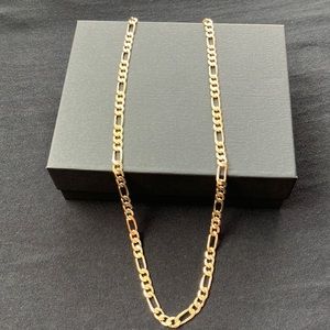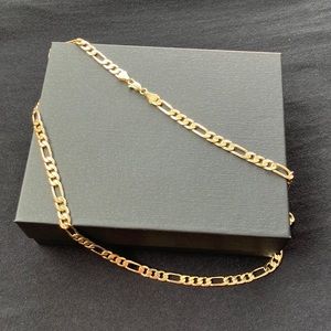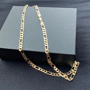 Solid Figaro Chain Necklace 14K Yellow Gold 24’’.