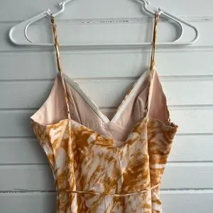 Style name from website - Downtown Cami Strap String Tie Waist Midi Dress Marble Print Orange