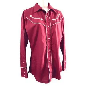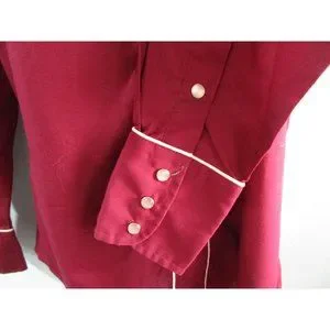 Vintage 70s Levis Pearl Snap Womans S Western Cowboy Rodeo Shirt Maroon White