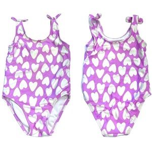 🩷CAT & JACK™ Toddler Girls' Pink/Purple One-Piece Swimsuit with a White Heart Print ✨Excellent condition! Minimal signs of wear. No holes or stains✨