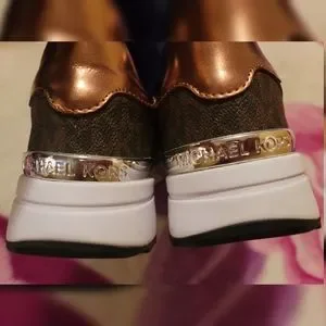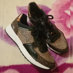 Michael Kors Women's Brown & Black Glitter Sneakers Shoes Size 7.5