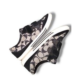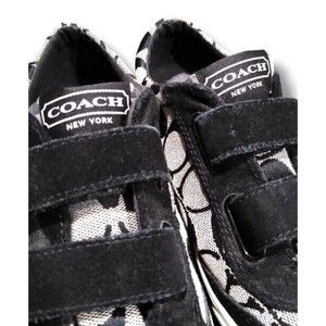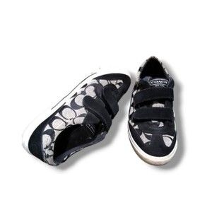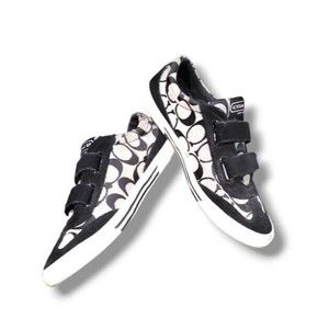 Coach New York Size 6.5 B Womens Priya Black Signature Print Strap Sneakers GUC