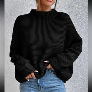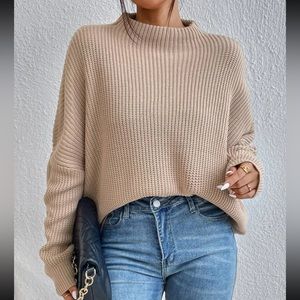 Cozy Oversized Mock Neck Long Sleeve Ribbed Knit Sweater Top