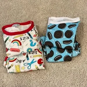 Other set is blue with ‘Oreo’ cookie print