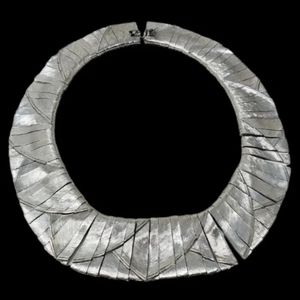 Style: Chunky Egyptian Revival Style Brushed Silver tone Runway Collar Necklace