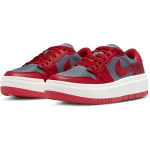 This Jordan 1 Elevate Low "Dark Grey/Varsity Red/Sail" Women's Shoe reworks an icon's original magic with a platform sole and low cut silhouette. Air cushioning keeps you lifted, and sleek leather in contrasting colors adds visual interest.