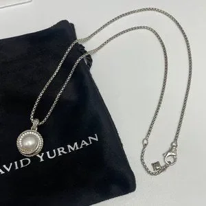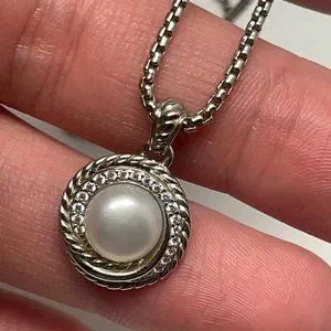 Authentic david yurman crossover pearl and diamonds pendant necklace