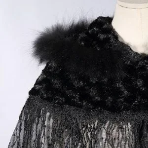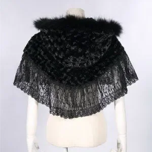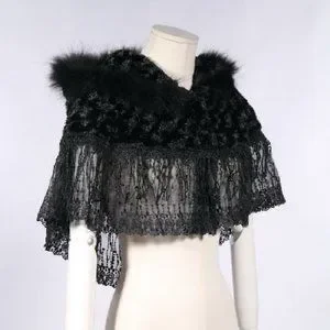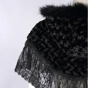 Gothic Lolita Steampunk Victorian Adorable Plush Fur & Lace Black Hooded Cape OS