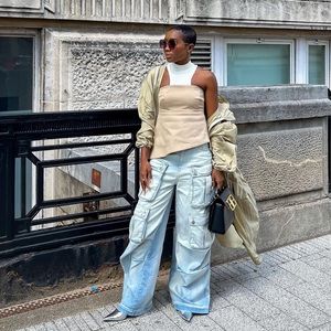 Strapless bustier made of cotton. Matching visible topstitching detail. Asymmetric hem. Invisible side zip fastening.