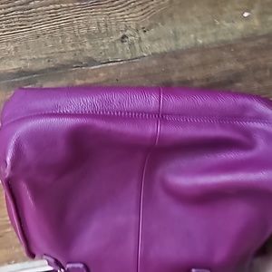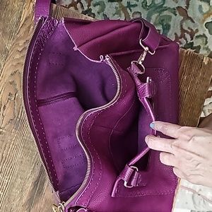 slightly used purple soft pebbled leather small tote/ crossbody. gold hardware.