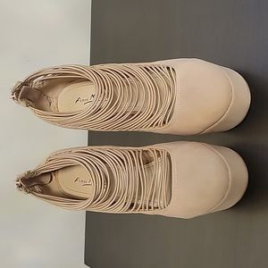 Anne Michelle Real Love Tan Faux Suede Back Zip Platform High Heels Size 8.5M