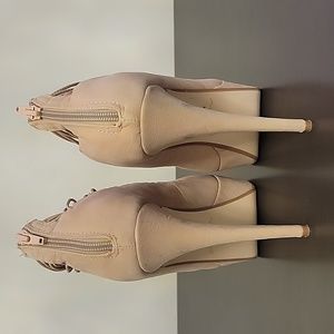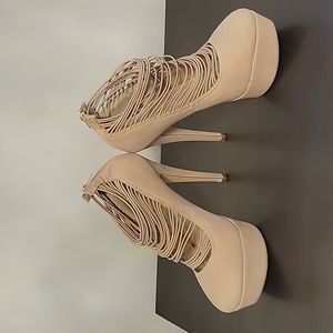 worn once, excellent condition. 5 1/2" heel; 1 1/2" platform,Stretchy strappy design