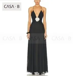 NEW!💫CASA B| Madeline Rosette flower Appliqué Deep V Sheer Long Slip Maxi Dress