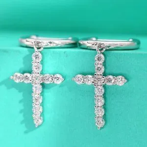 Certified 2mm Moissanite Diamond Cross Huggie Hoop Earrings NEW
