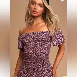LULUS Such A Darling Sweet Floral Print Off Shoulder Dress. Size S
