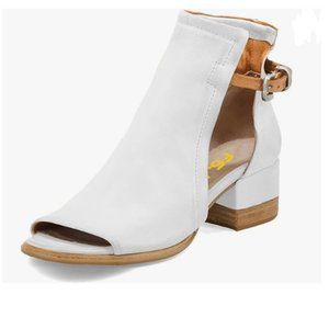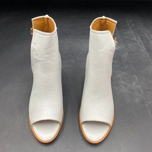 A FSJ White Peep Toe Boot Cut Out Buckle Block Low Heeled Ankle Bootie