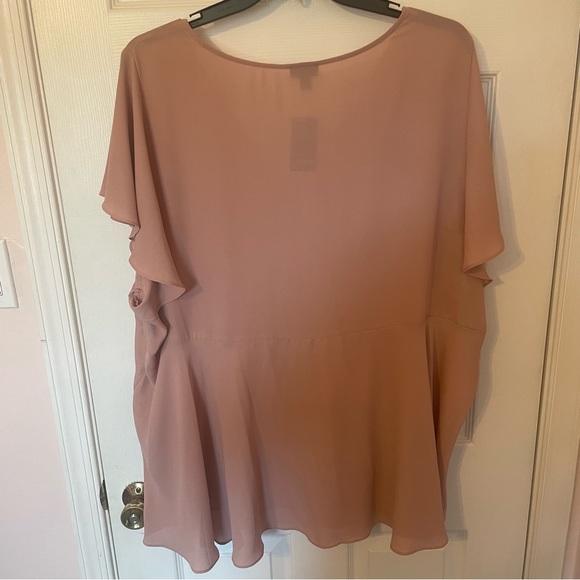 Brand new with tags blouse from Torrid. It’s a really pretty dusty rose color - they call it dusty quartz - I love this color - and it’s perfect for every season! Very forgiving and flowy with flutter sleeves. You can wear this with jeans or even some more formal pants or leggings.