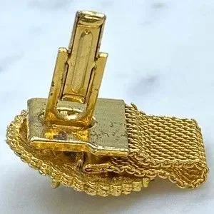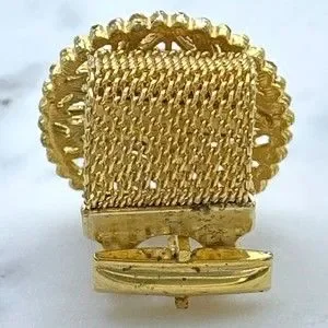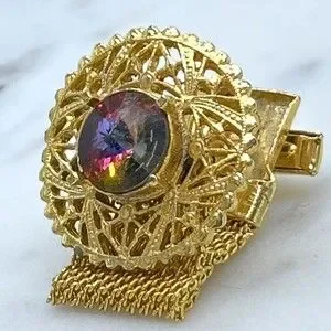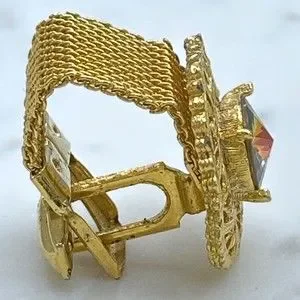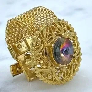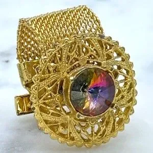 Vintage Round Prismatic Rivoli Gem Gold Tone Mesh Wrap Around Single Cufflink