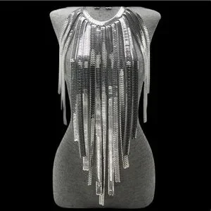 Silver Gold and Gunmetal Long Fringe Metal Statement Body Chain Necklace