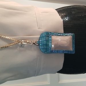 SOLD! NWT!Brahmin Stevie Blue Topaz Croc Embossed Leather ID Card Case Lanyard
