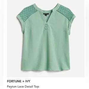 Fortune & Ivy: Peyton Lace Detail Top (light green)