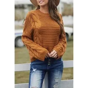 The solid brown color of this sweater makes it a versatile addition to your wardrobe. It features a cable-knit style that adds a touch of elegance to your outfit. The long sleeves provide ample coverage, making it perfect for layering. Get your hands on this sweater today and enjoy the warmth and comfort it provides!