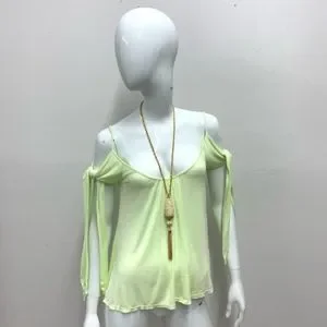 NWOT Free People Believe Me cold shoulder top. Light Lime Green color