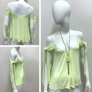 NWOT, Free People Believe Me Cold Shoulder Top in Lime Green