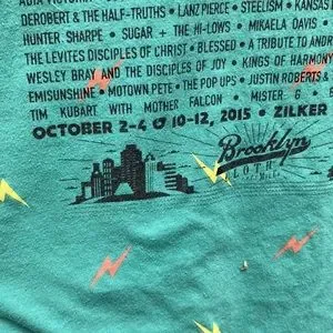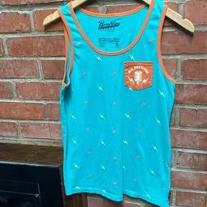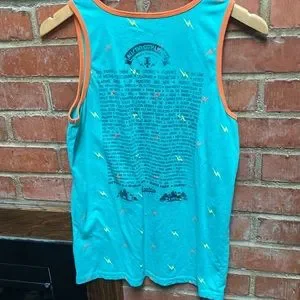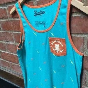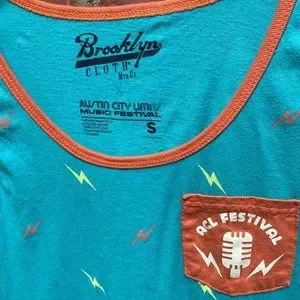 Chic turquoise blue with orange trim pocketed ACL Festival concert tank. If you missed the fest in 2015, here’s your chance to pretend like you didn’t.