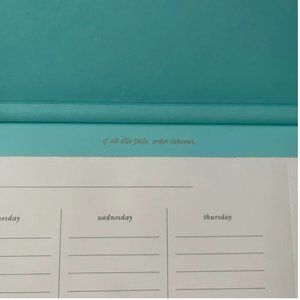set the menu well in advance with kate spade new york's deco dot weekly meal planner. it features a leather-like cover (read: spill-resistant), 52 pages and perforated shopping lists (genius!).