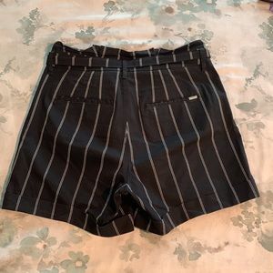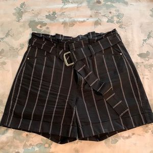 WHBM Pinstripe high-rise, belted paper bag 5” short