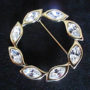 ๐ MONET GOLD ROUND SWARVORSKI CRYSTAL LEAF BROOCH โ VINTAGE