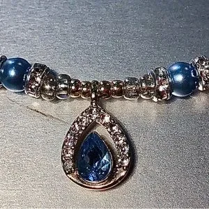HAND CRAFTED Silver Gold Blue rhinestone pendant necklace Upcycled
