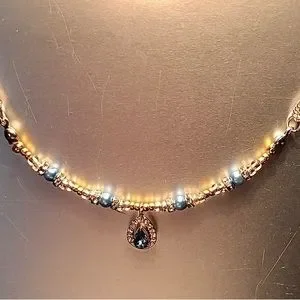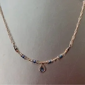 Dainty elegant hand beaded tear drop pendant necklace vintage and new components