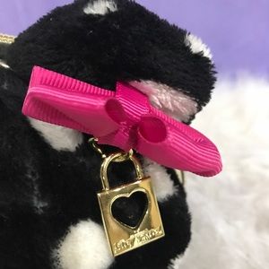 NEVER USED BETSY JOHNSON POLKA DOTS COSMETIC BAG BLACK&WHITE WITH PINK RIBON ZIP. Measures approximately 7 x 5 x 3”. Please view all photos carefully as they are part of the description as well. Comes from a clean smoke free dog friendly home. All of my items are guaranteed authentic. 7- 11