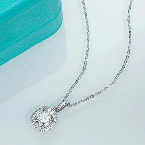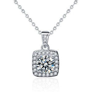Certified 1ct. t.w. Moissanite Diamond Square Halo Pendant Necklace NEW