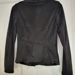 Beautiful luxuriously soft black faux suede moto jacket size XS by SL8. Inner sleeves made of black ribbed knit fabric for ease of movement. NWOT 90% Polyester 10% Spandex
