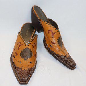 Pikolinos BCBGirls Taupe Leather Pointed Slip On Cowboy Mules Women's Size 10
