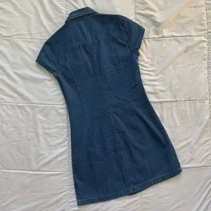 Afends denim dress with pearl snap buttons. seriously one of the cutest dresses i’ve ever owned just sadly does not fit me anymore. would look so cute with a pair of cowboy boots or doc martens depending on your style. in perfect condition and only worn a handful of times.
