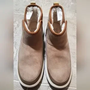 These are new with tags. Popular bootie in tan suede look with plush inside and comfort sole. Water Resistant perfect for Fall. Sized 6.5. I am taking a big loss from what I paid so no offers accepted unless in bundle discount.