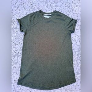 The T-shirt is machine washable and has a basic style that makes it easy to pair with other clothing items. It is new with tags and has never been worn before. This Free People Hot Spring Green T-shirt is perfect for women who want to look great without having to worry about the condition of their clothing.