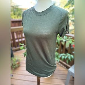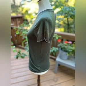 This green T-shirt from We the Free is a great addition to any wardrobe. With a crew neckline and cap sleeves, it is perfect for any season, whether it's winter, summer, fall, or spring. It is a slim fit and comes in a size L, making it a great choice for women who want to look stylish and comfortable.