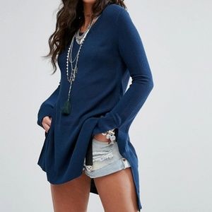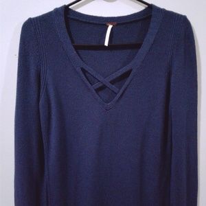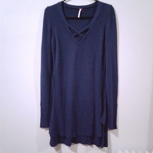 Women's Free People Criss Cross Sweater Blue Tunic Side Slit Size Small