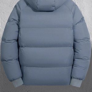 Dusty Blue Preppy Mens Drawstring Hooded Zipper Puffer Coat