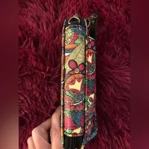 Like new condition. Great space to carry credit cards, bills, change, and your phone! Very front and colorful print. No signs of wear.