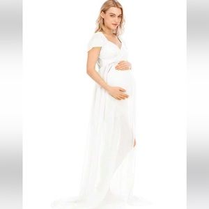Maternity Off-Shoulder Floor-Length Dress